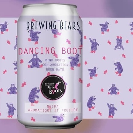 - Dancing Boots – IPA – New England / Hazy, Collaboration avec le French Chapter de la Pink Boots Society Blend Yakima Pink boots